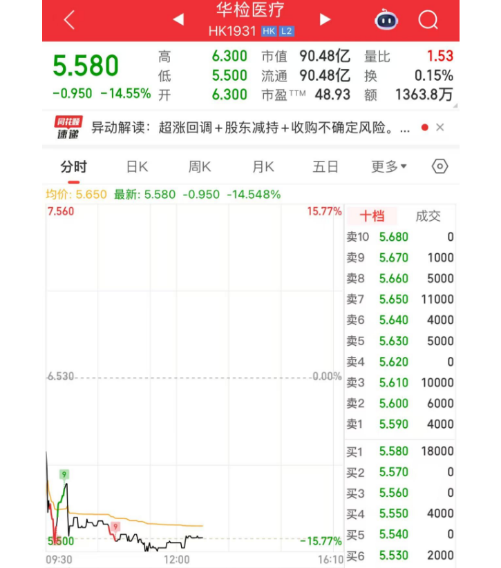 上证报中国证券网讯(记者 李五强)12月1日,华检医疗(01931.HK)股价大幅下挫,措施13时29分,华检医疗报5.58港元/股配资炒股入,跌幅达14.55%。