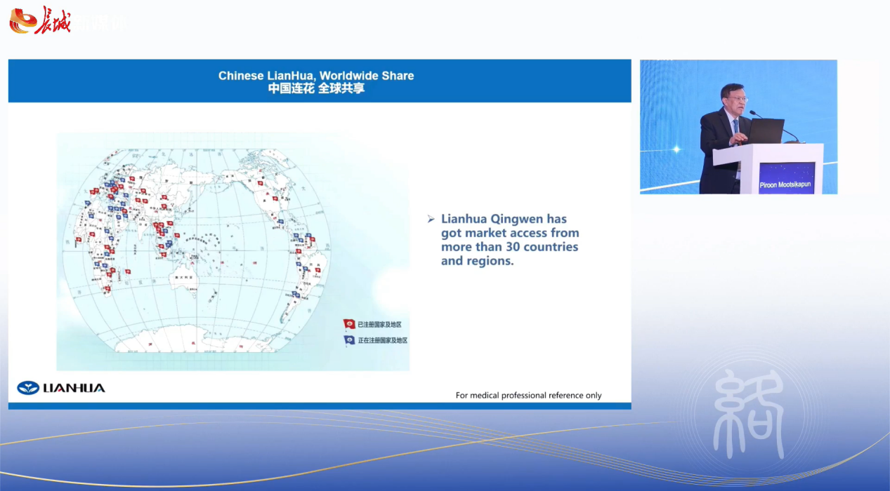 Piroon Mootsikapun证明指出,连花清瘟在泰国获批6呼吁吸谈允洽症,包含伤风、流感、新式冠状病毒感染、病毒性肺炎、慢性鼻窦炎和慢性支配性肺疾病急性加剧期等疾病的诊治。