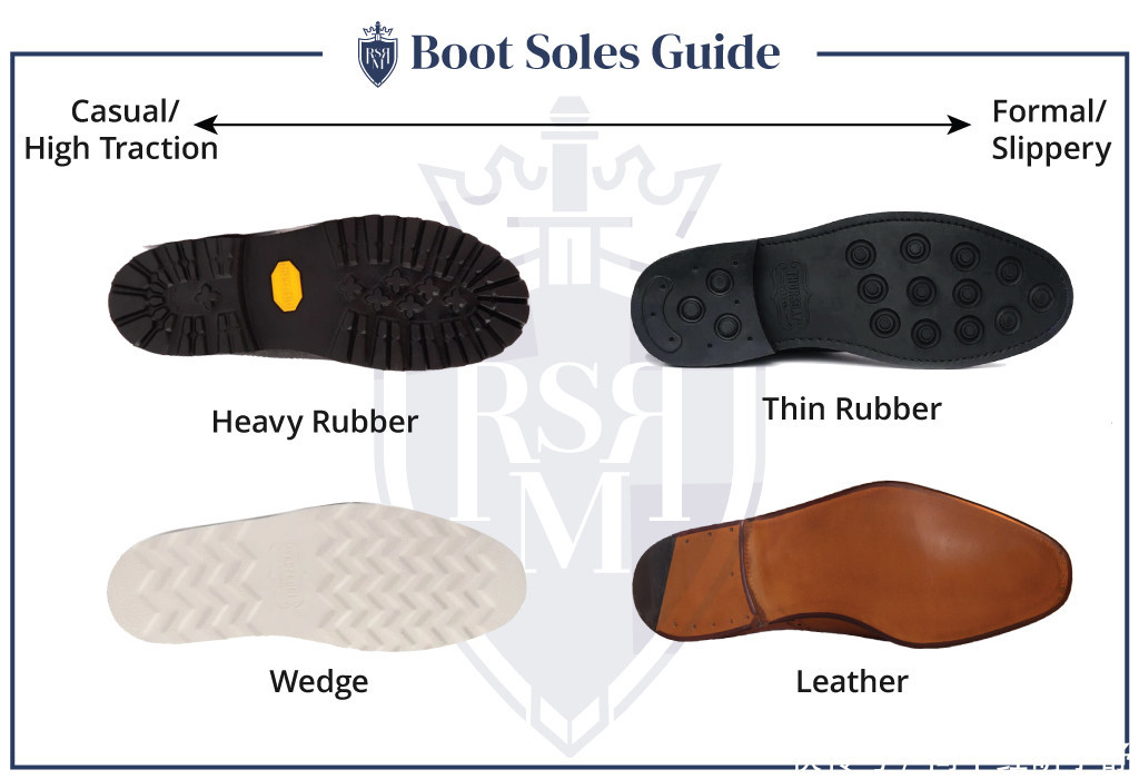 皮革鞋底:着装又时尚,但湿滑且耐用性较低。橡胶鞋底:抓地力,防水,很是适合平素穿戴。凸耳鞋底:厚厚的胎面,可抓地力和坚固的诱导力。可丽饼鞋底:柔滑而失业,很是适合心仪的作风。要是您住在多雨或下雪的区域,请穿橡胶或凸耳。皮革鞋底适合干燥,穿戴的日子。
