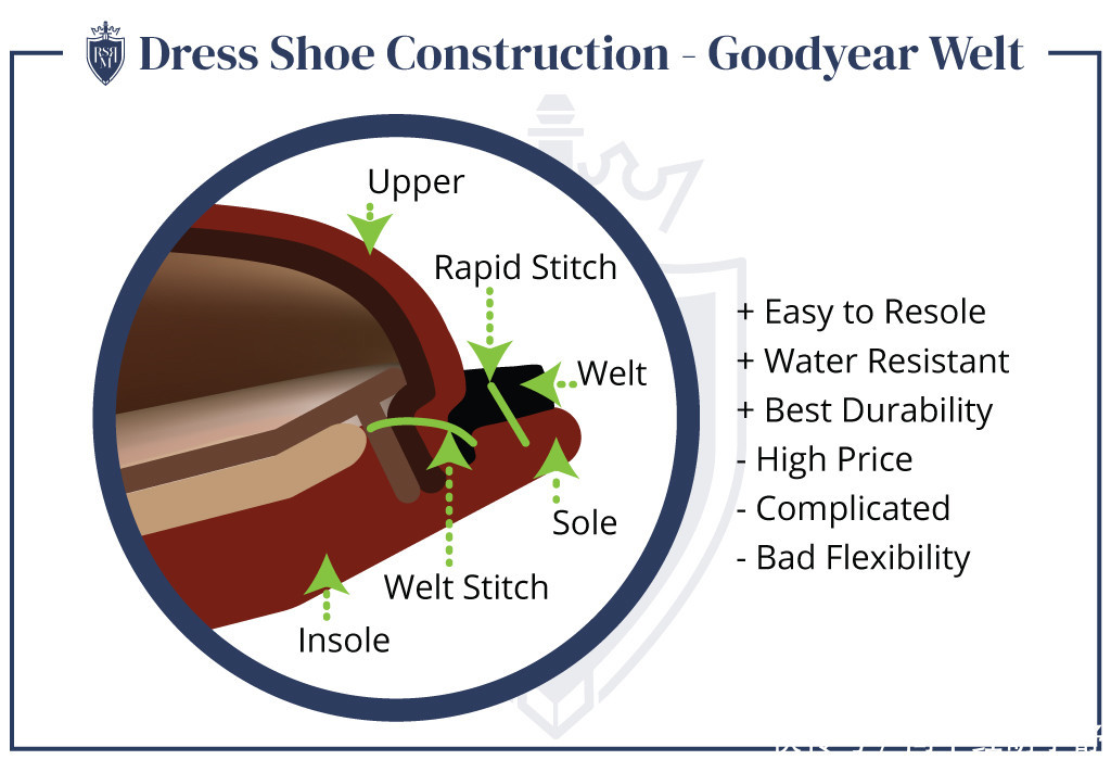 1、固特异的WELT或BLAKE针迹结构。