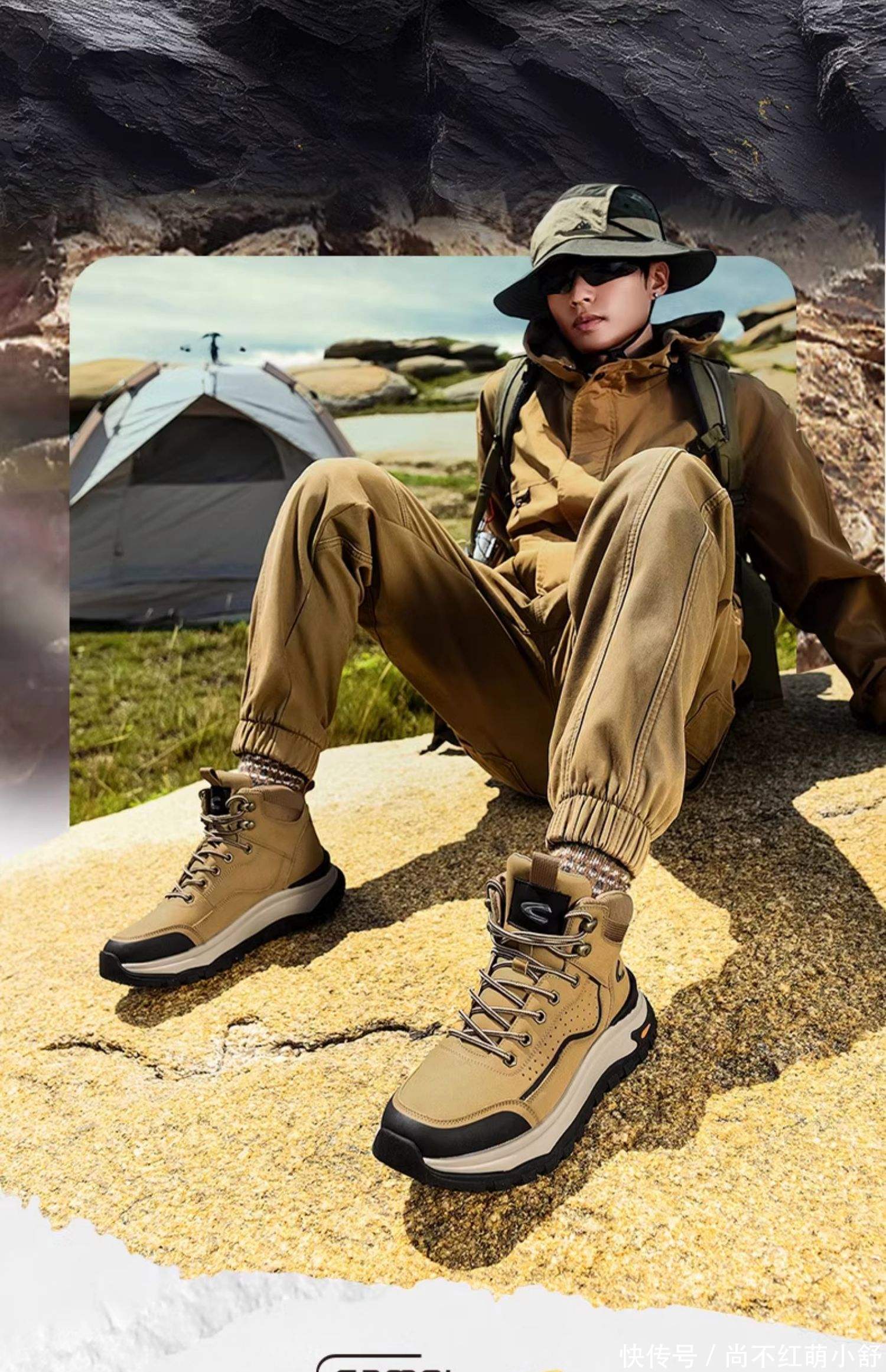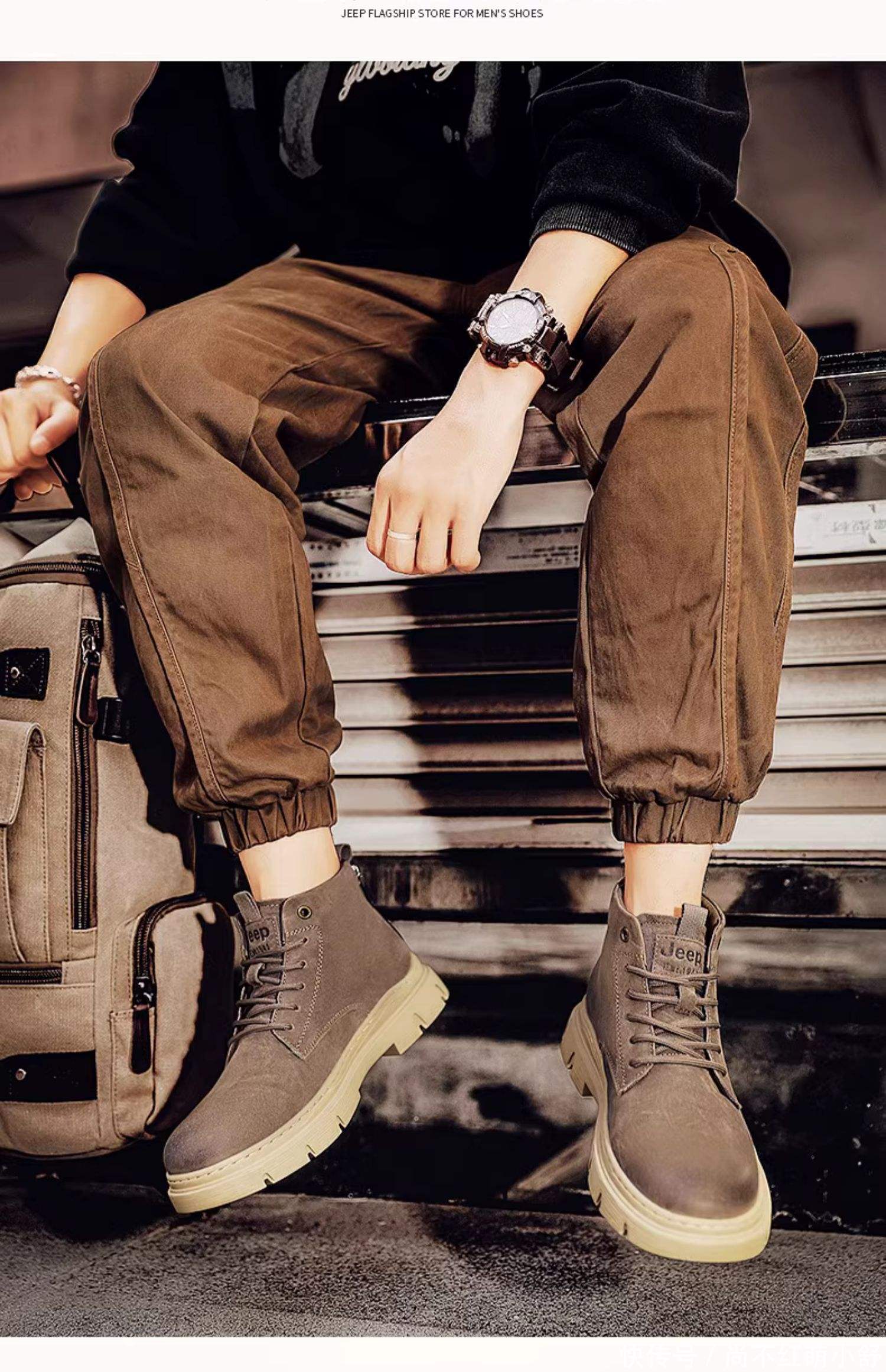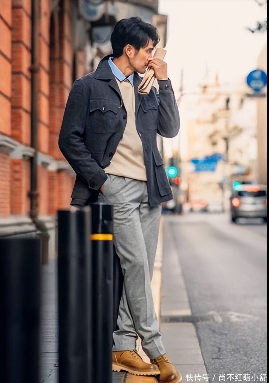 沙漠靴老是给东谈主一种英伦失业的帅气感,具体的穿搭look可以参考:冲锋衣+理会裤,聘用卡其色,这是最经典又闲雅的组合,浮松心仪,又充满大气慵懒感,很是适合可爱出游的男士们。